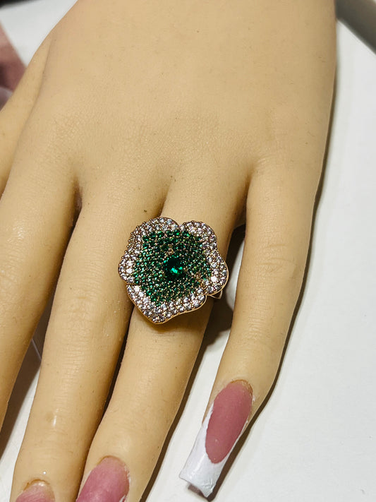 GREEN CRYSTAL FLOWER RING